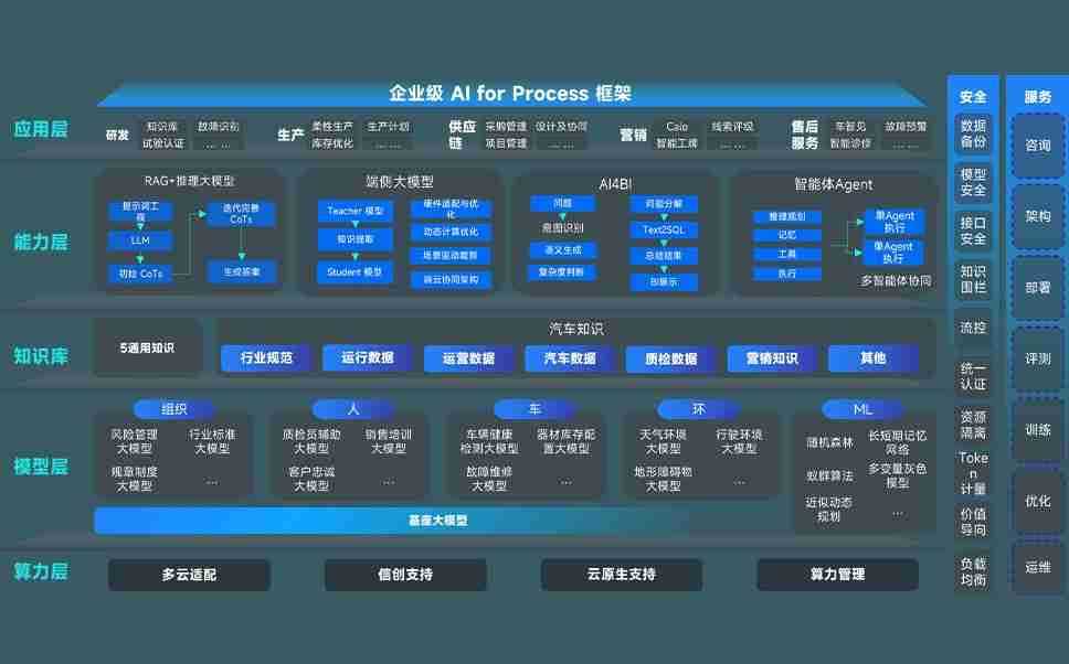 端到端的一站式AI工作空间深度融合了从企业战略规划到日常经营的全流程业务板块,,,,定向解决车企内部领域多、、部门多、、、、链条长、、、场景碎片化等难题,,,,支持车企快速构建以AI为核心的生产力写作体系,,,,实现任务执行与AI能力的无缝集成与交互